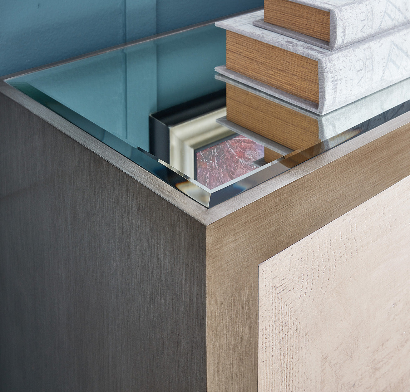 The Nova 2 Door Chest is a sleek and sophisticated addition to any room. With its wood grain finish and mirrored glass top, this chest exudes elegance and style. The 2 doors open to reveal an internal shelf, providing ample storage space. The soft close doors add a touch of luxury to this practical piece of furniture.