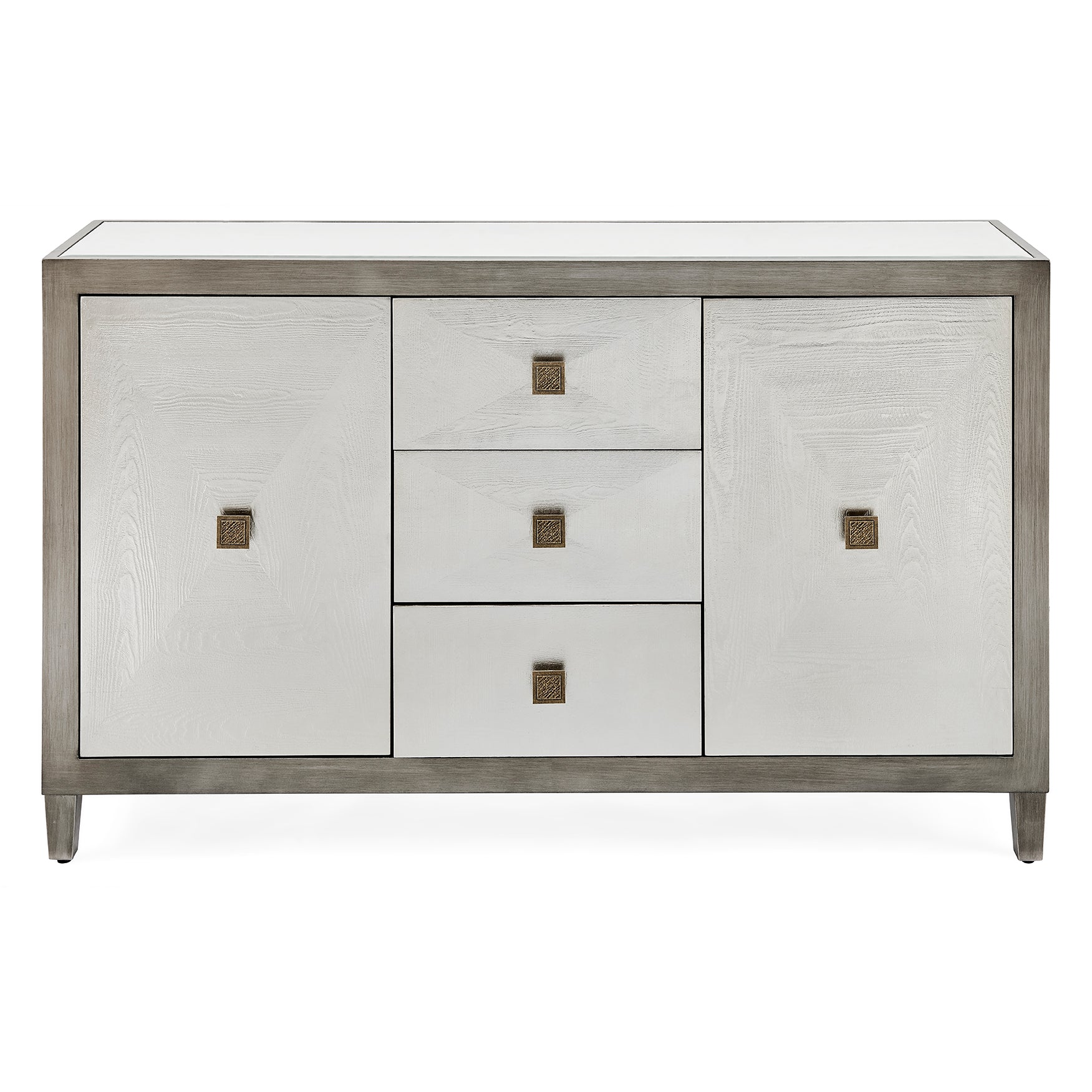 The Nova 3 Drawer Sideboard combines modern style with practical functionality. Featuring a sleek wood grain finish and a mirrored glass top, this sideboard adds a touch of elegance to any living space. The soft-close doors ensure quiet operation, while the three drawers and two doors provide ample storage space for all your essentials.
