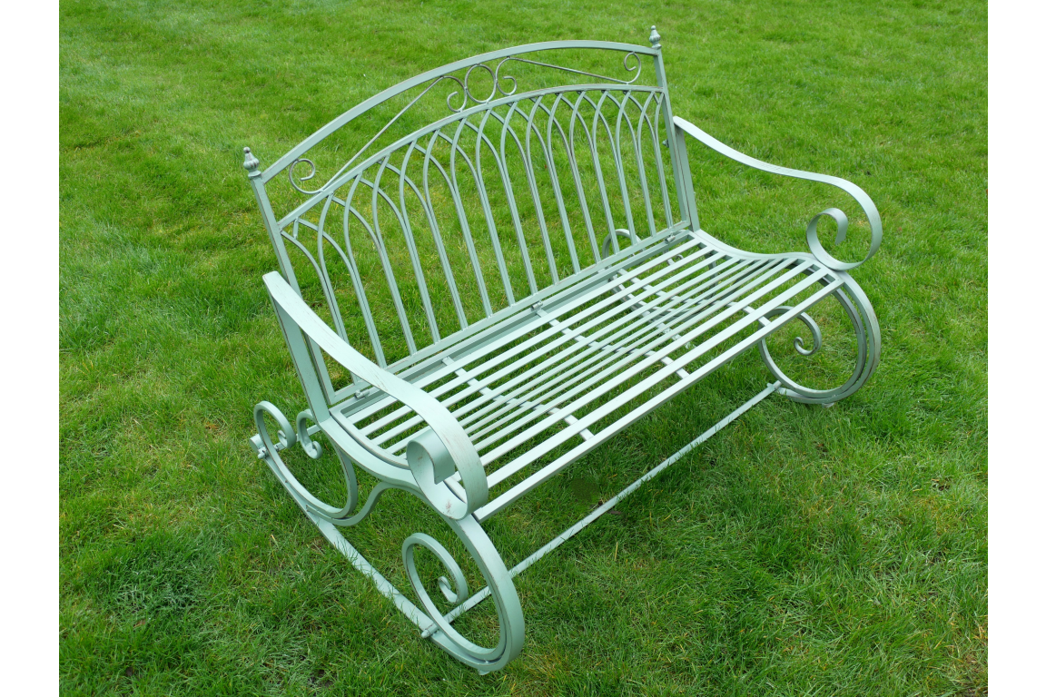 Enhance your outdoor space with the stylish and durable Alfie Rocking Bench in Green. Its classic design with a modern twist provides a unique seating option that adds both comfort and charm to your garden or patio. Crafted from sturdy metal, this bench is perfect for relaxing moments outdoors, but remember to protect it from changing weather conditions to preserve its beauty and functionality for years to come.