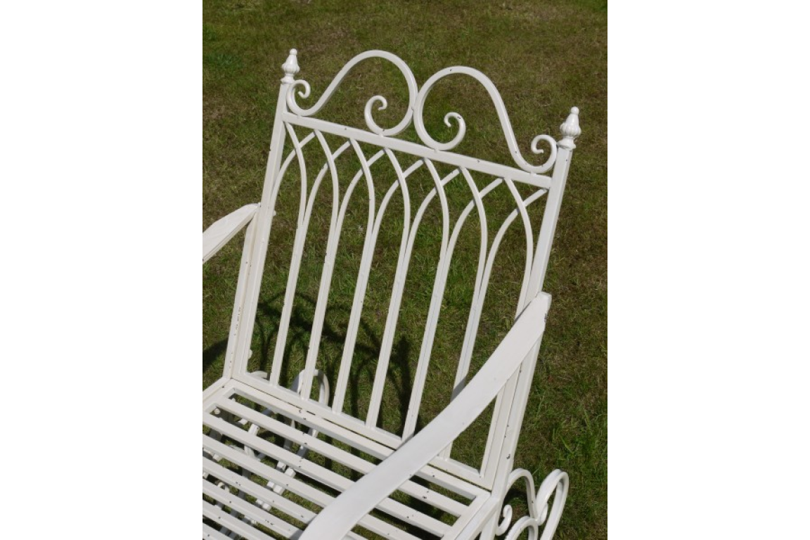 This Antique Cream Rocking Chair exudes timeless elegance with its antique white finish, adding a touch of vintage charm to any indoor or outdoor space. The classic rocking chair design features intricate details such as curved armrests and ornate spindle backrest, creating a picturesque silhouette that complements traditional and shabby chic decor styles.