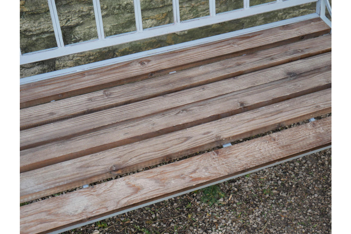 The Lincoln Bench exudes a charming industrial style with its combination of iron and fir wood. The iron frame is elegantly finished in antique grey, adding a touch of vintage flair to any space. This bench's design features a sturdy construction that is both visually appealing and functional, making it a versatile piece for indoor or outdoor use.