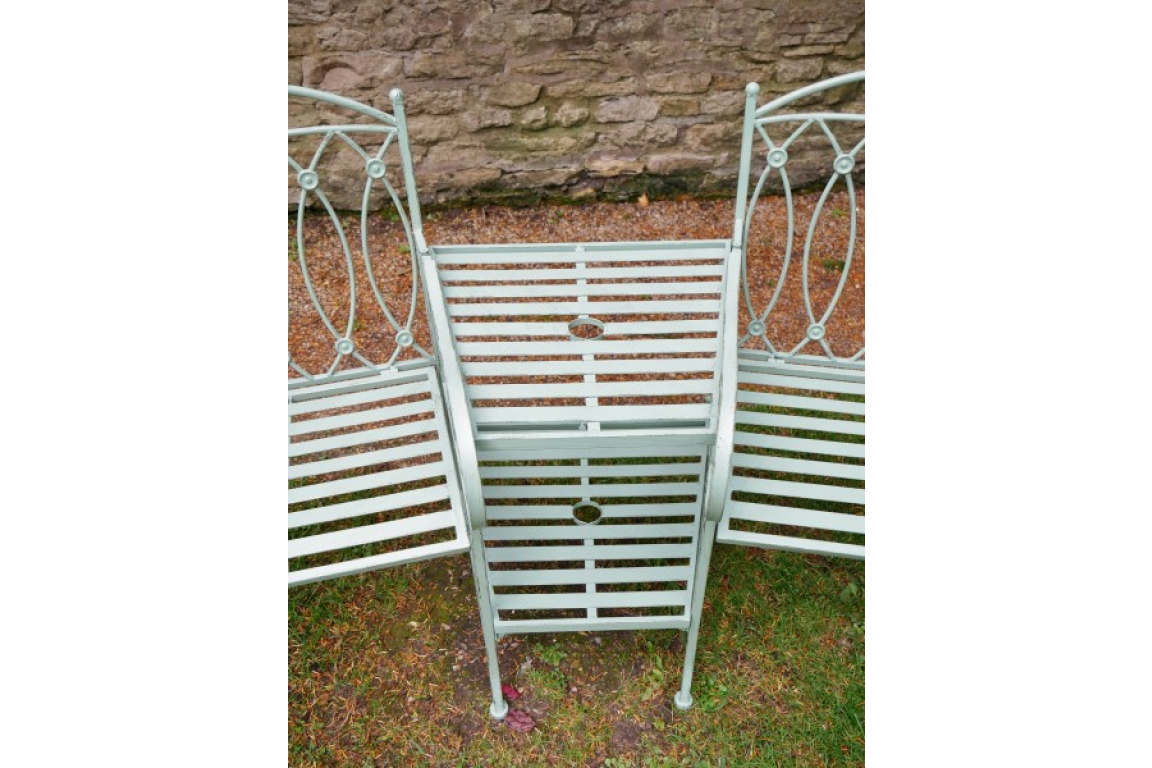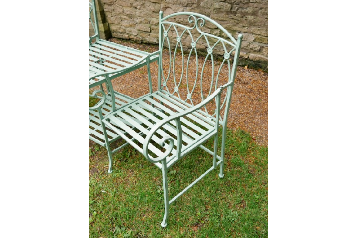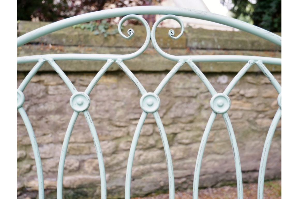 The Pistachio Lovers Bench is a charming addition to any outdoor space with its unique design and pistachio green finish. Crafted from durable metal, this bench features rustic touches on the paintwork, adding character and personality to its overall look. Its vibrant colour and intricate details make it a standout piece that effortlessly enhances the aesthetic of a garden, patio, or balcony.