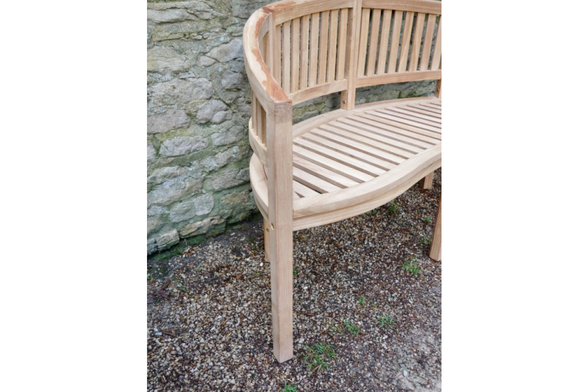 This bench is perfect for creating a cozy seating area for relaxation or entertaining guests. Whether placed near a fire pit for warm gatherings or under a leafy tree for a peaceful retreat, the Teak Bean Bench offers both comfort and style. Enjoy the beauty of outdoor living with this timeless piece that will age gracefully over time, enhancing the natural beauty of your surroundings.
