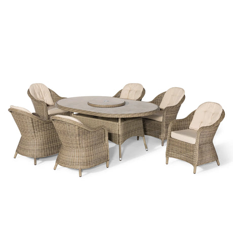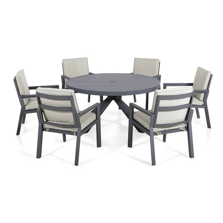 Sicily 6 Seat Round Pedestal Table with Teak Arm Chairs