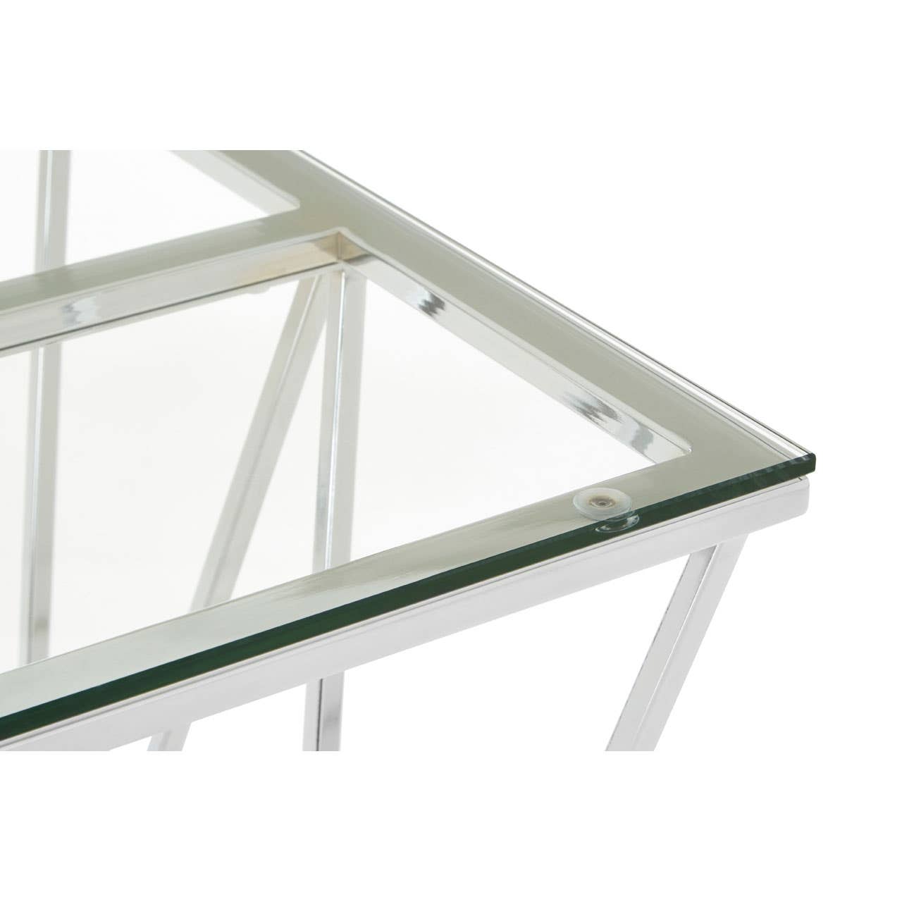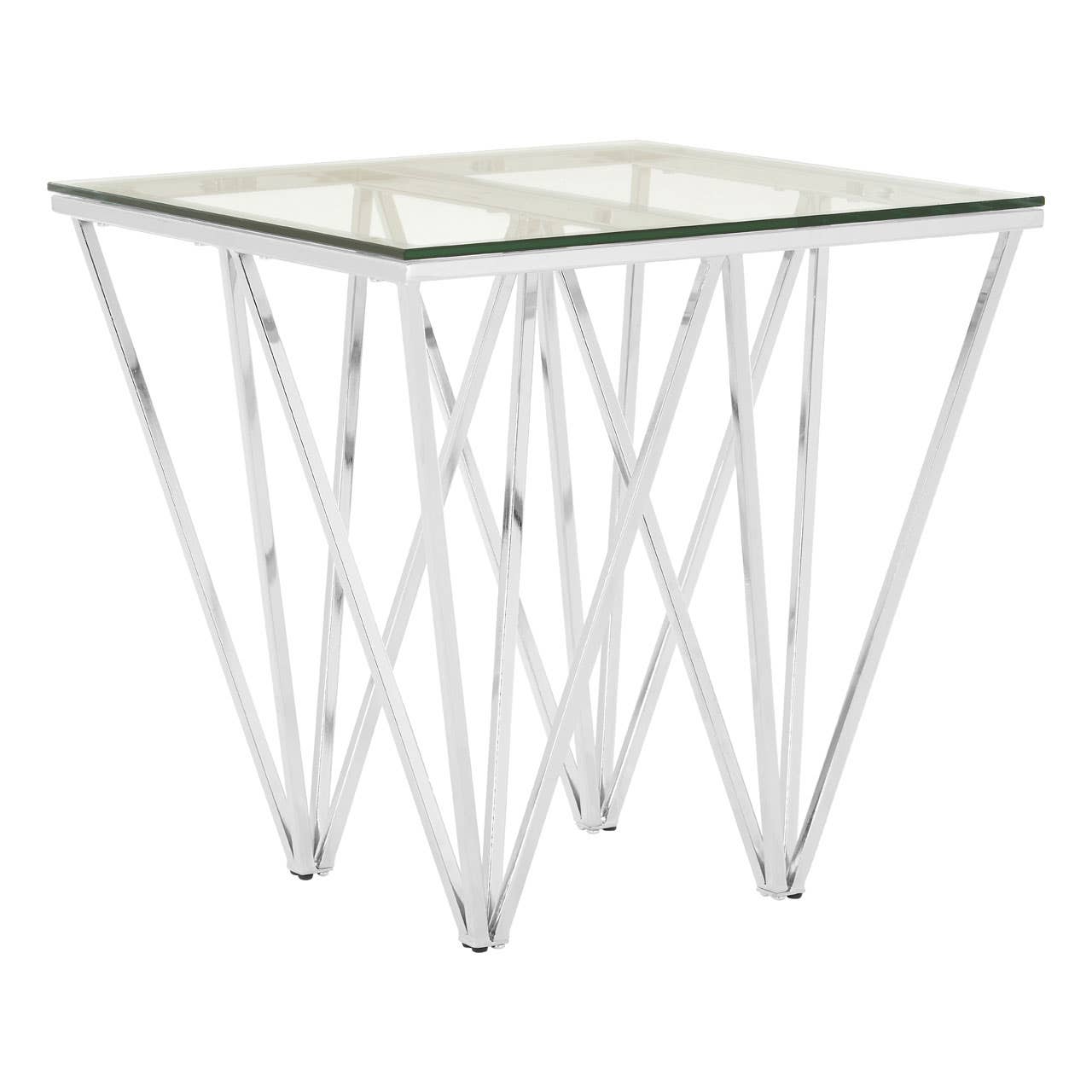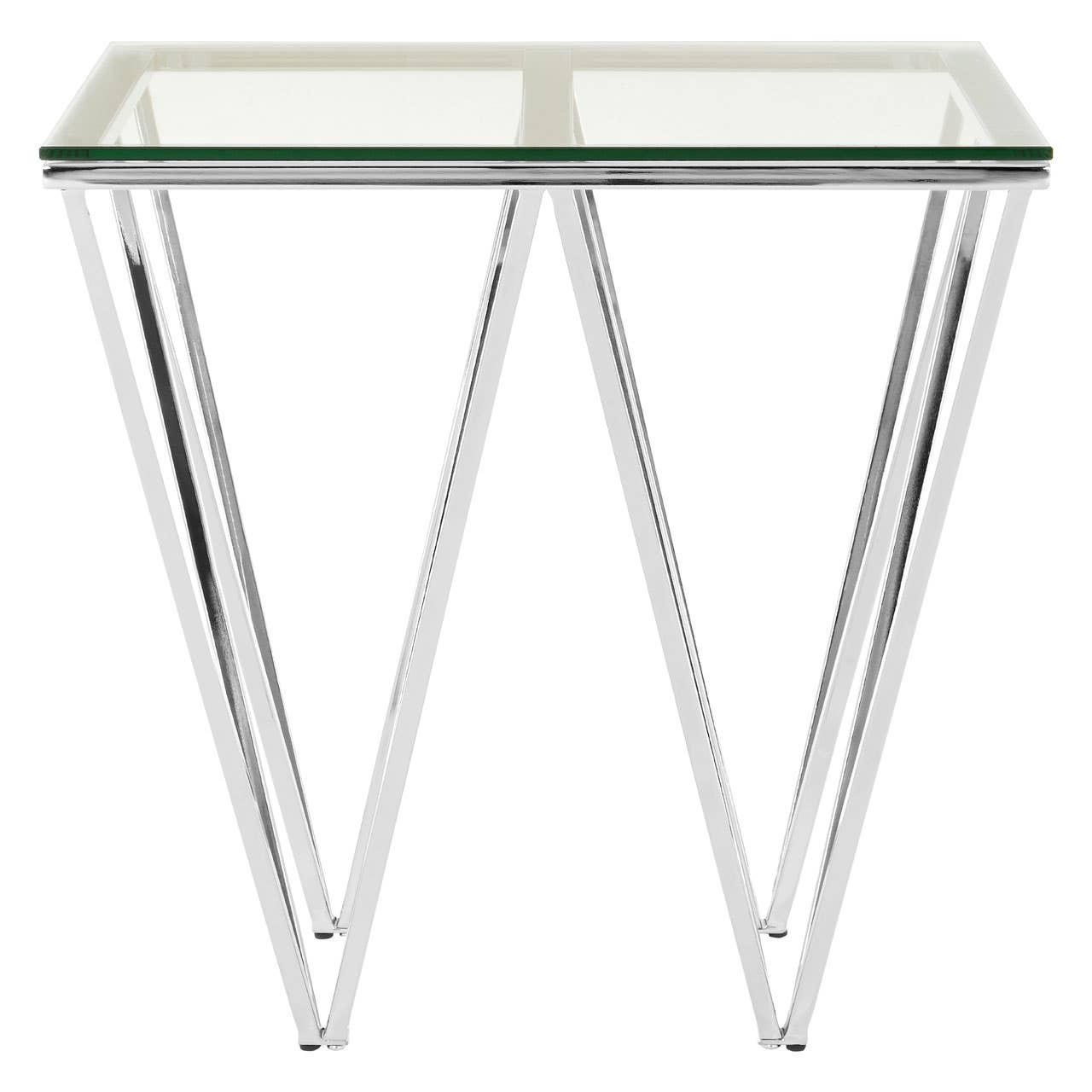 Enhance your living space with the Chrome Triangular End Table from our Allure collection. Crafted with sleek metal legs in a unique triangular design, this end table embodies sophistication and modern flair. Elevate your decor with this luxurious piece that effortlessly combines form and function.