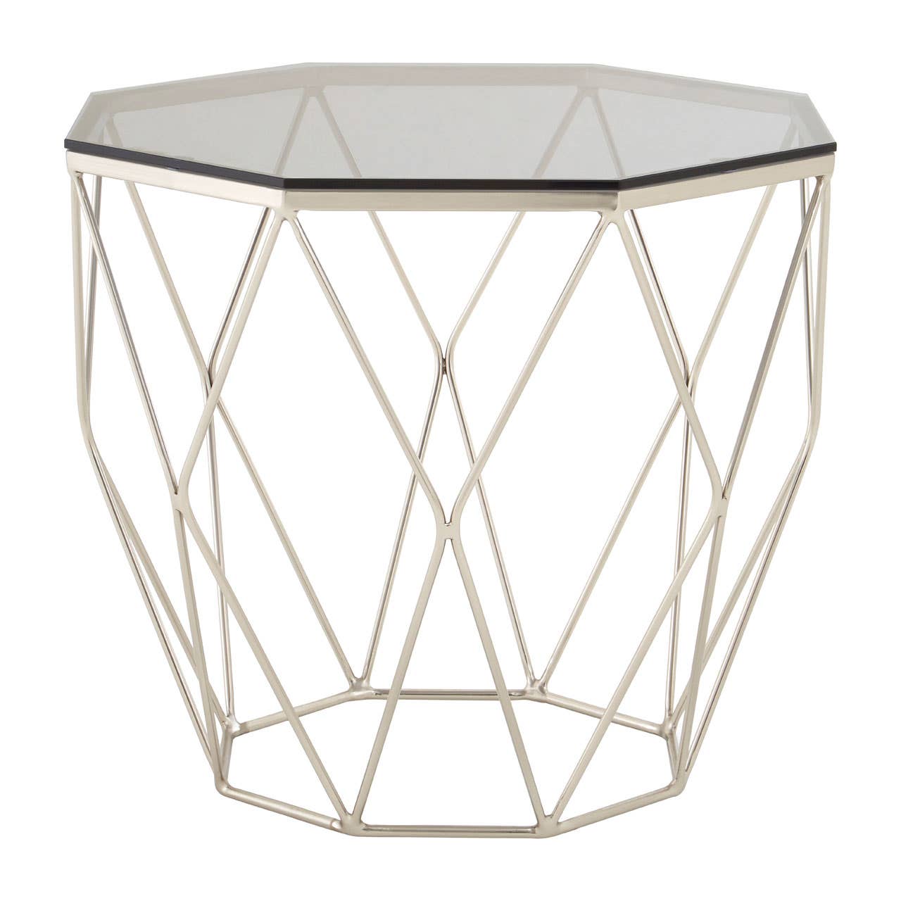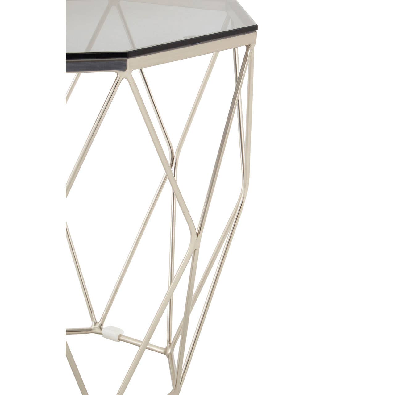Elevate your living space with the Octagonal Nickel End Table. The brushed nickel base forms a mesmerizing geometric design, complemented by a sleek smoke grey tempered glass top. This modern piece adds a touch of sophistication and style to any room.