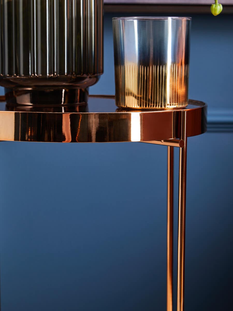 Elevate your space with our Rose Gold Mirrored Side Table. Featuring tall and sleek rose gold legs, this table exudes contemporary elegance. The mirrored tabletop with polished metal accents adds a touch of luxury to any room. Perfect for showcasing your favorite decor pieces or as a statement on its own, this side table is a must-have for modern interiors.