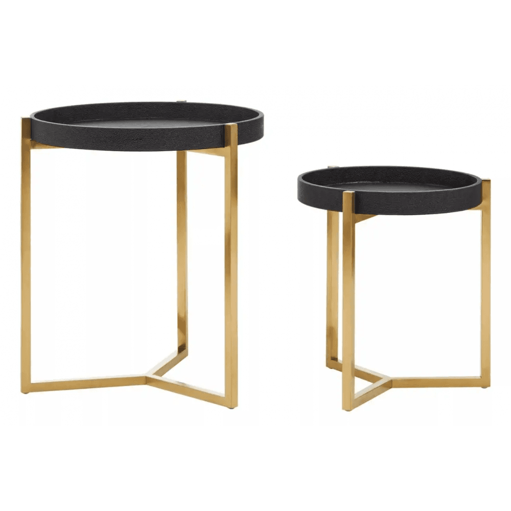 Cordoba Set Of Two Black Shagreen Tray Tables