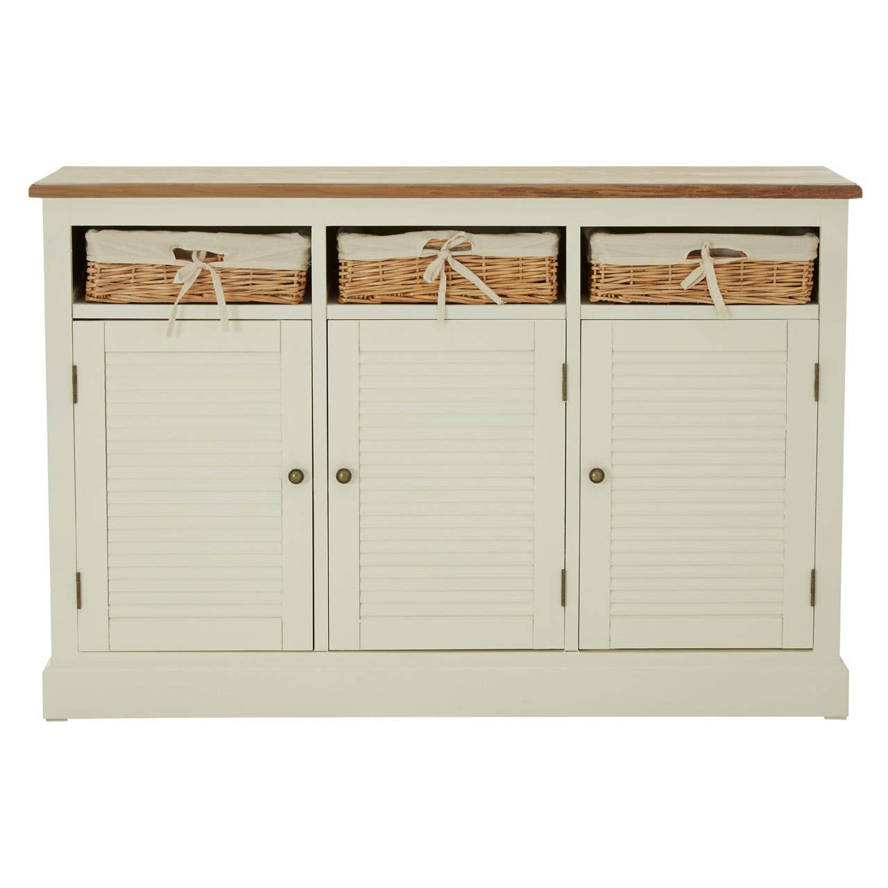 Crafted with care, the Dorset Cream Sideboard is a charming addition to your living space. Made of sturdy MDF with an ash veneer top, this sideboard boasts a delightful contrast between the cream frame and elegant rattan baskets. Perfect for storing books, magazines, or other essentials, the three equal-sized baskets with integrated handles help you organise and declutter your home. Elevate your decor with this stylish and functional piece from the Dorset Collection.