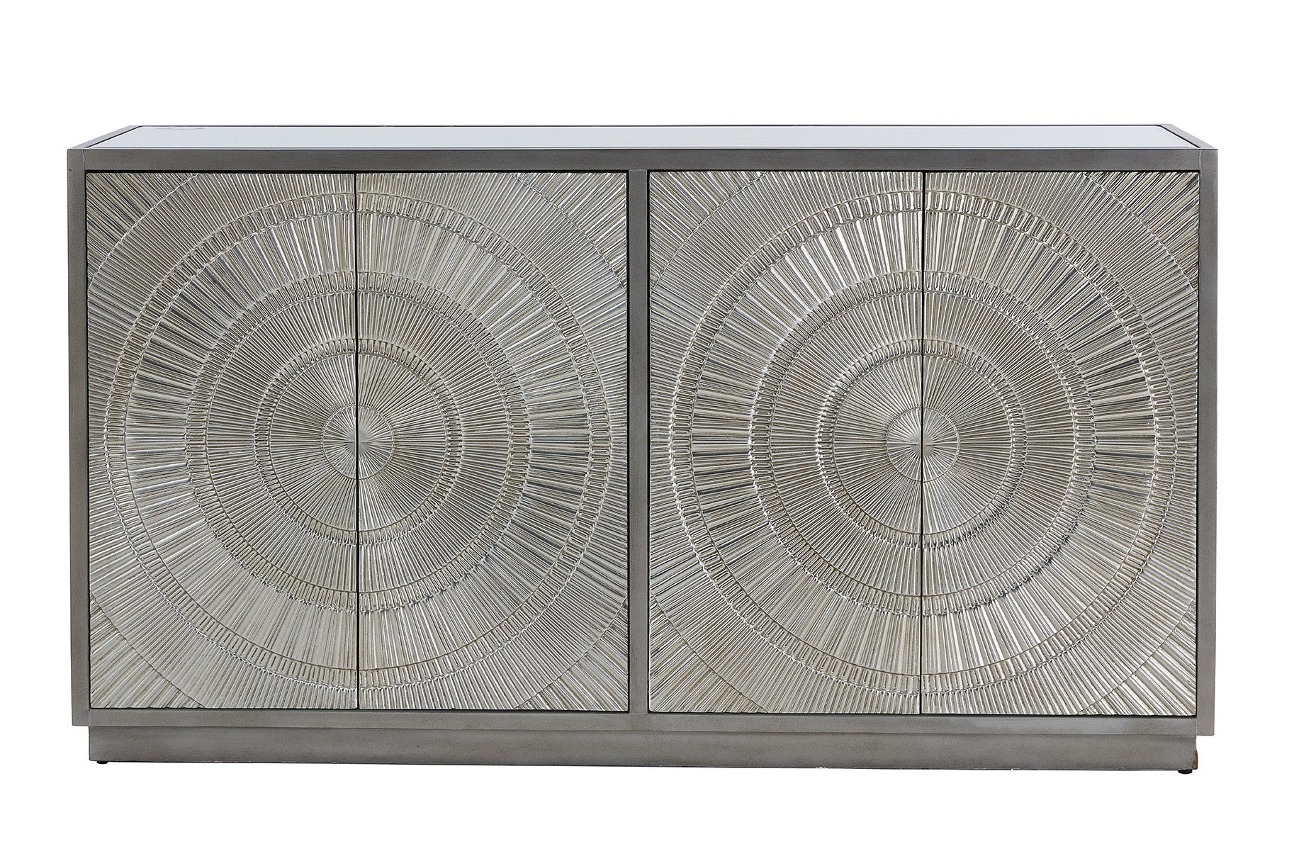 The Frenso 4 Door Sideboard in Silver effortlessly combines style and functionality. With its sleek design and silver finish, this sideboard adds a touch of elegance to any room. The soft close doors ensure quiet and smooth operation, while the geometric details add a touch of grandeur to the piece.