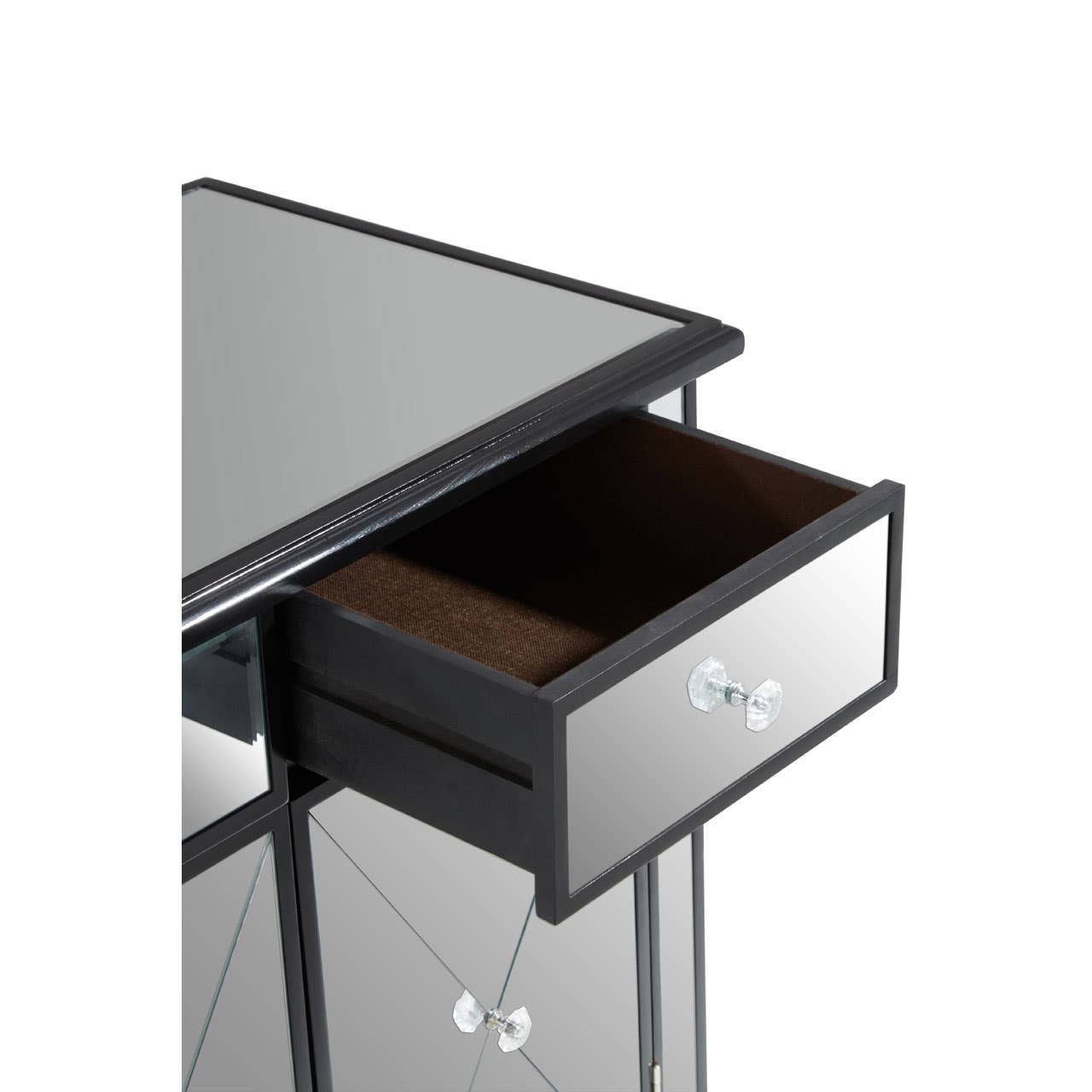 Elevate your home decor with the Tiffany Mirrored Sideboard. Featuring ample storage with spacious cupboards and drawers, this piece is as practical as it is elegant. The cut glass handles add a touch of sophistication to the glamorous mirrored finish. Pair it with the Tiffany console table to create a cohesive and luxurious look in your living space. Add a touch of glamour and functionality to your home with this stunning sideboard.