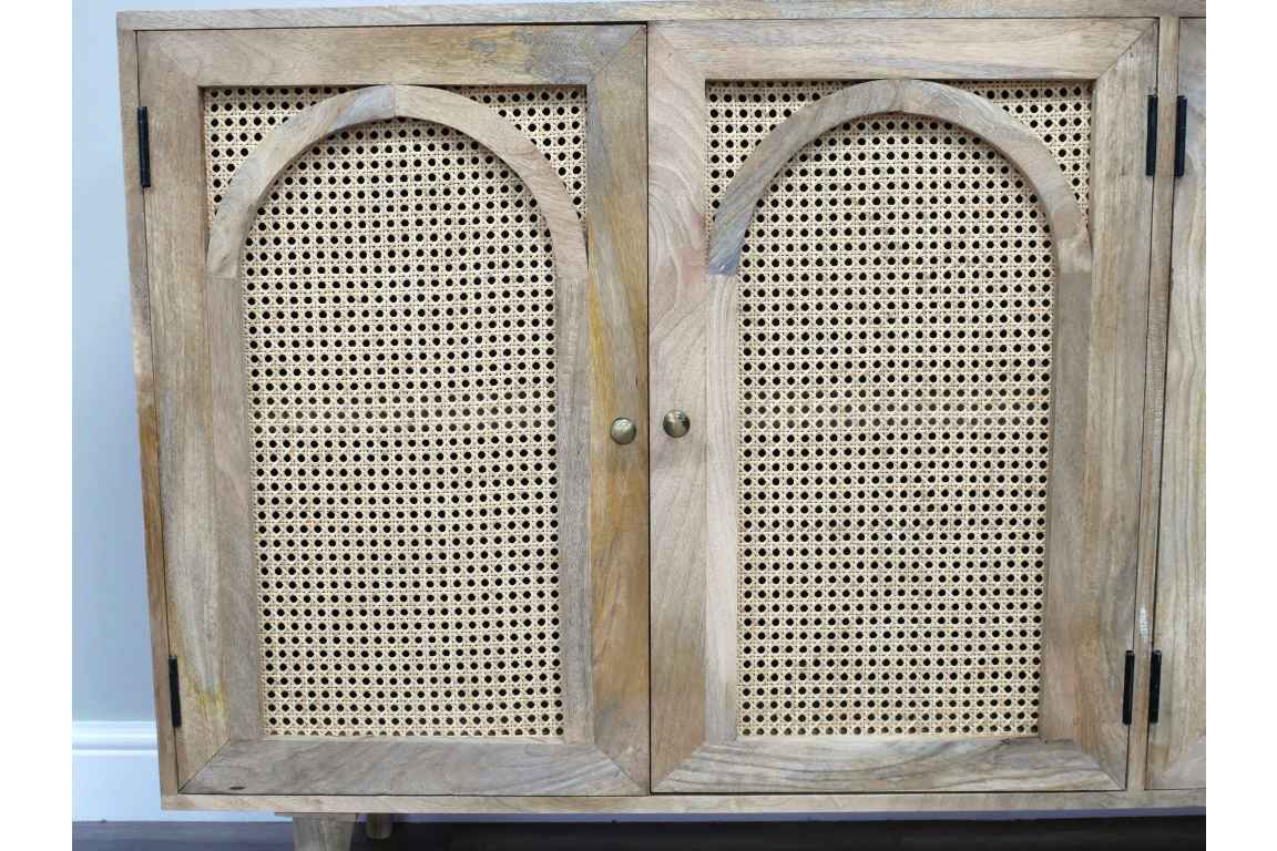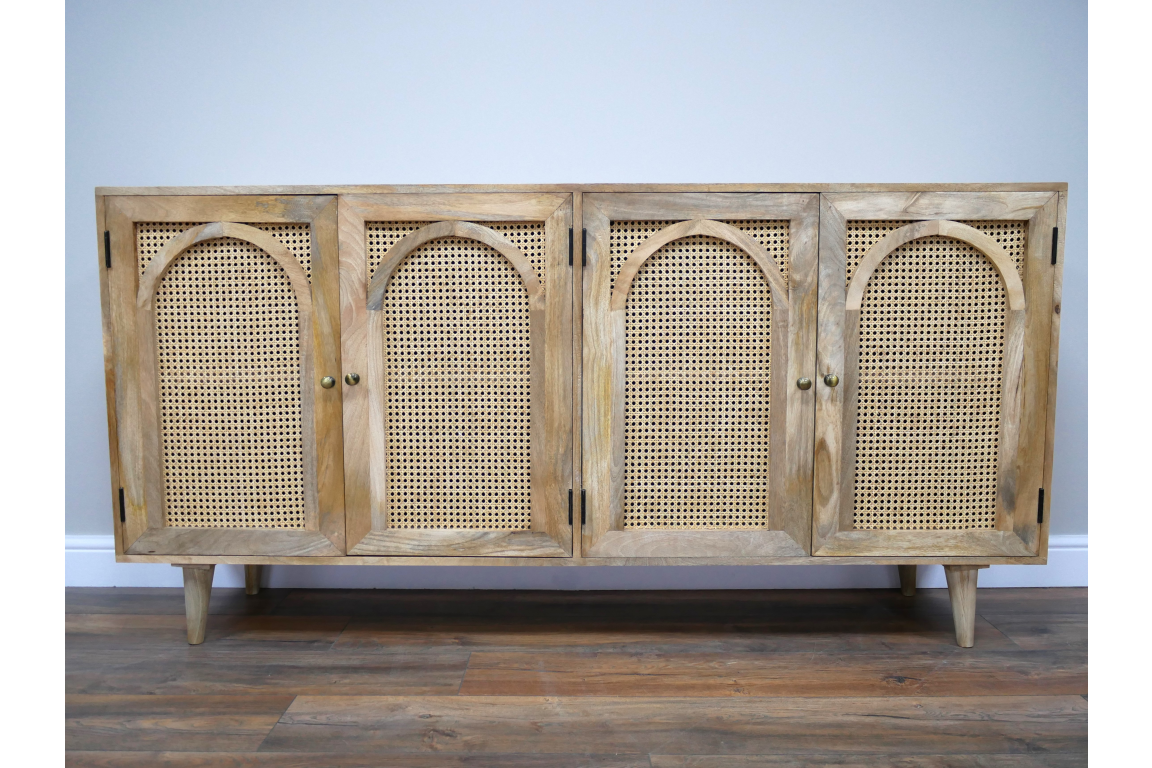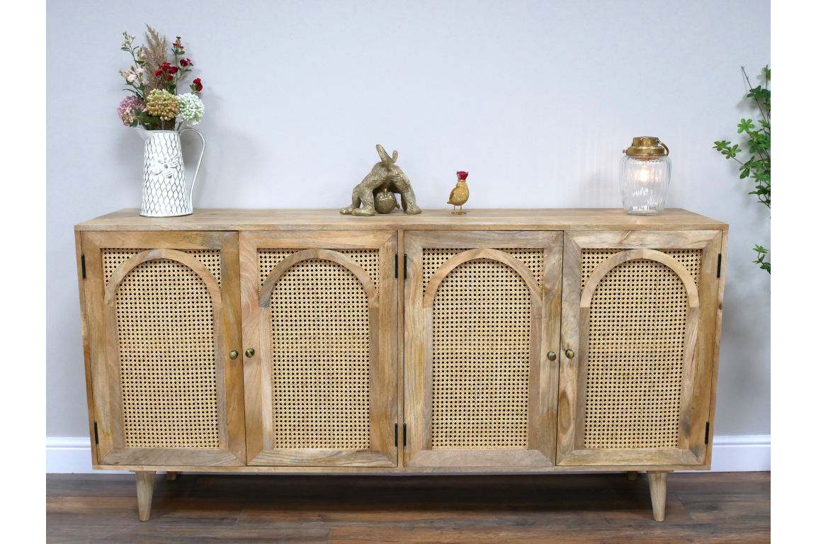 SEO description: Elevate your home decor with this Large Rattan Sideboard crafted from acacia wood and rattan. Back in stock in October, this rustic and bohemian-inspired piece adds character and charm to any room while offering practical storage solutions. Ideal for storing dinnerware, linens, or other essentials, this sideboard is a stylish addition to your living space.