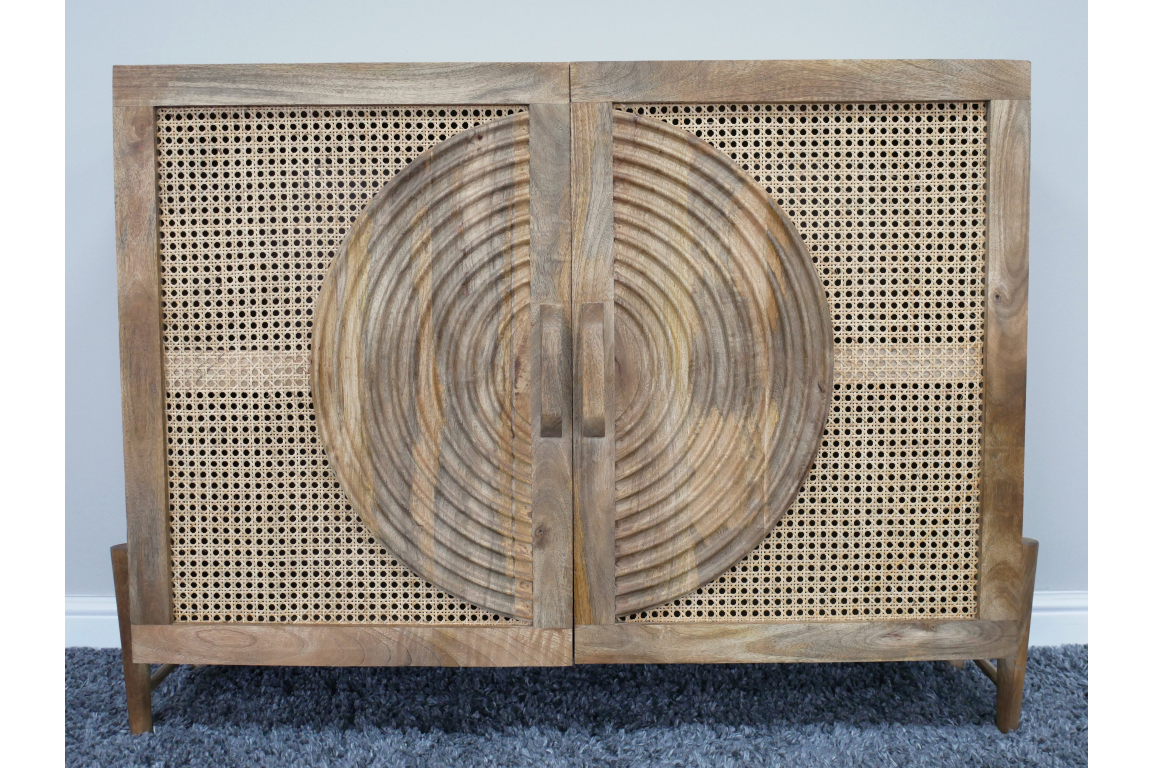 Crafted from high-quality rattan and sturdy wood, this sideboard is not only visually appealing but also functional. The ample storage space behind the doors allows for easy organization of your belongings, making it perfect for storing dinnerware, linens, or other household items. Whether placed in a dining room, living room, or hallway, this sideboard serves as a versatile and elegant storage solution.