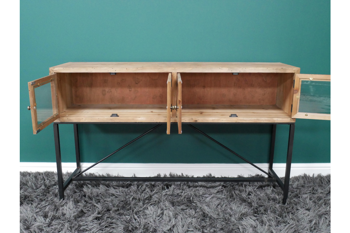 This industrial-style sideboard combines the rustic charm of fir wood with the sleekness of metal, creating a unique and versatile piece for your home. The fusion of natural wood grains with sturdy metal accents gives this sideboard a contemporary and urban look, perfect for modern interiors seeking a touch of character.