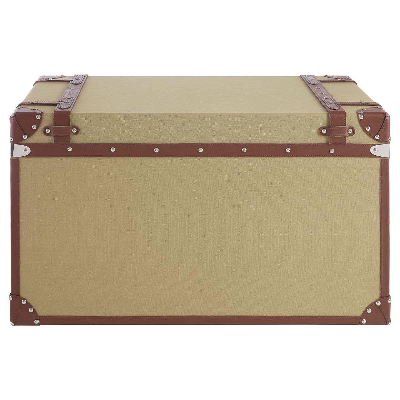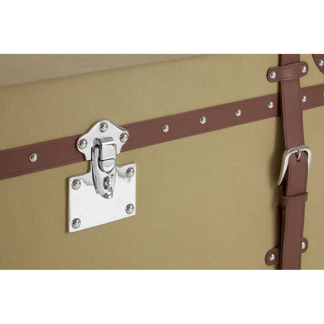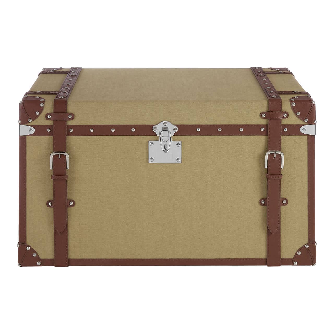 Enhance your home storage with our eco-friendly Canvas & Leather Storage Trunk, featuring genuine leather accents and a secure metal clasp lock for a touch of sophistication.