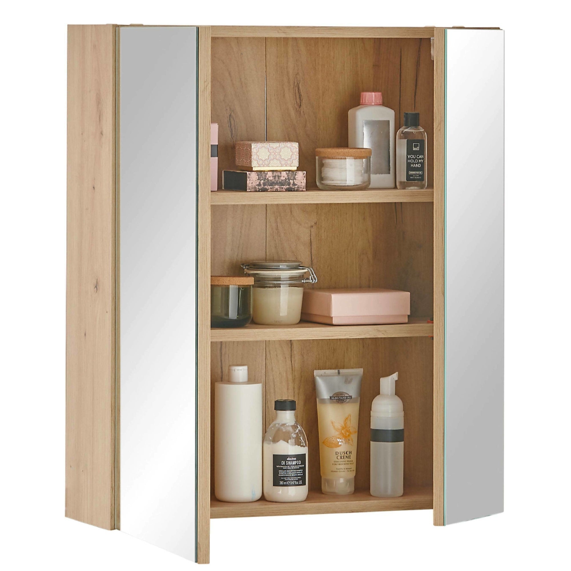 - Includes two interior shelves alongside the mirror, providing generous storage for all daily essentials while maintaining a sleek appearance.