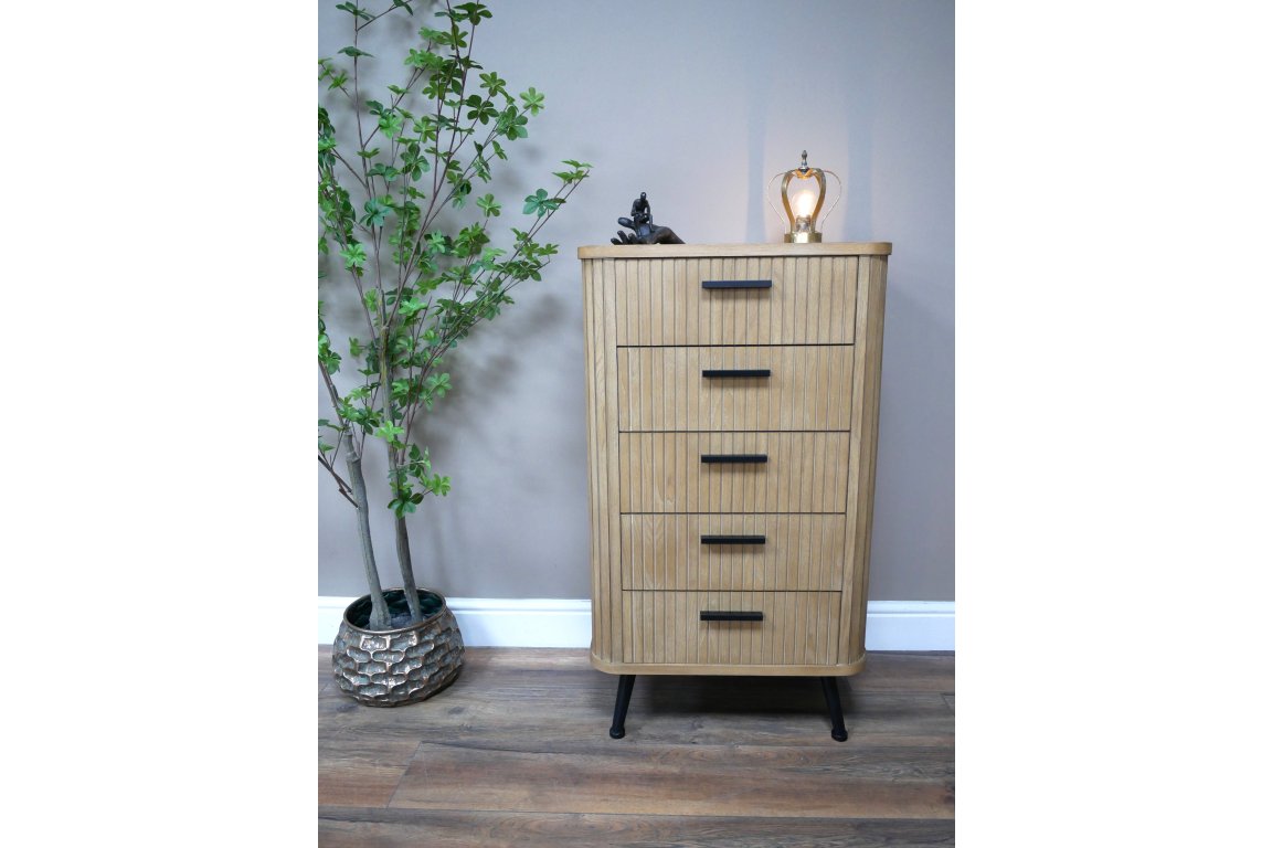 This versatile piece of furniture is perfect for storing a variety of items, from clothing and accessories in a bedroom to linens and towels in a bathroom. The tall boy's ample storage space and compact footprint make it ideal for smaller living spaces where maximising vertical storage is key. Whether used as a standalone piece or paired with other furniture, this tall boy is a practical and stylish solution for keeping your belongings organised and easily accessible.