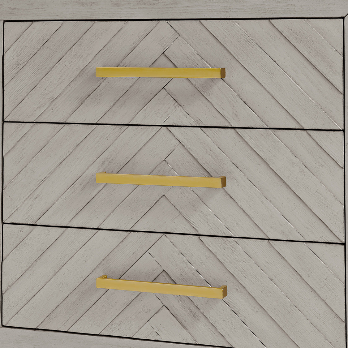 Add a touch of sophistication to your bedroom with the Gilroy 6 Drawer Chest. With six spacious drawers, this chest provides practical storage solutions while elevating the aesthetic appeal of your space. The no-assembly-required feature ensures hassle-free setup, allowing you to enjoy this piece instantly.