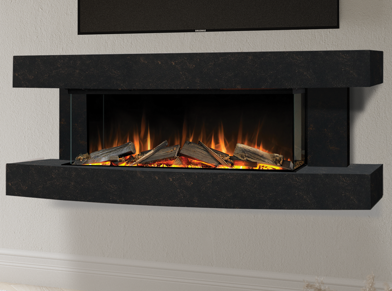 Enhance your living space with the Evonic Cubbington 1350 Suite, featuring Black Onyx Real Logs and remote control operation. This stylish stove boasts a 1500W heat output, curved woodwork, and a British Woodland real log set for a realistic fireplace experience. Enjoy the mesmerising Coconut husk and sparkling gemstone fuel bed, three-sided glass design, and overbed illumination.