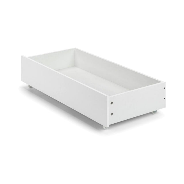 The Manhattan Underbed Drawers (Set of 2) in White High Gloss offer additional underbed storage, finished in a high gloss white for a sleek and modern look. With easy-to-pull casters, these drawers are a perfect match for the Manhattan Bookcase Bed, providing convenient storage solutions for a tidy and organized bedroom. Crafted from MDF, they ensure both durability and style for a practical sleep space.