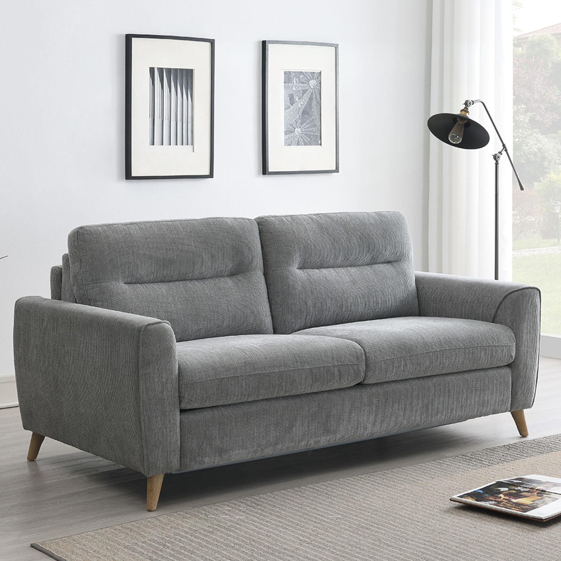 This contemporary styled Anderson Sofabed in Grey is designed with crisp fabric to emphasise comfort. The suite features compact back cushions, firm armrests, and soft seats filled with high-density foam and fibre for optimum support. Immerse yourself in your own oasis of comfort with the Anderson sofa range, available as a sofa bed for added practicality.