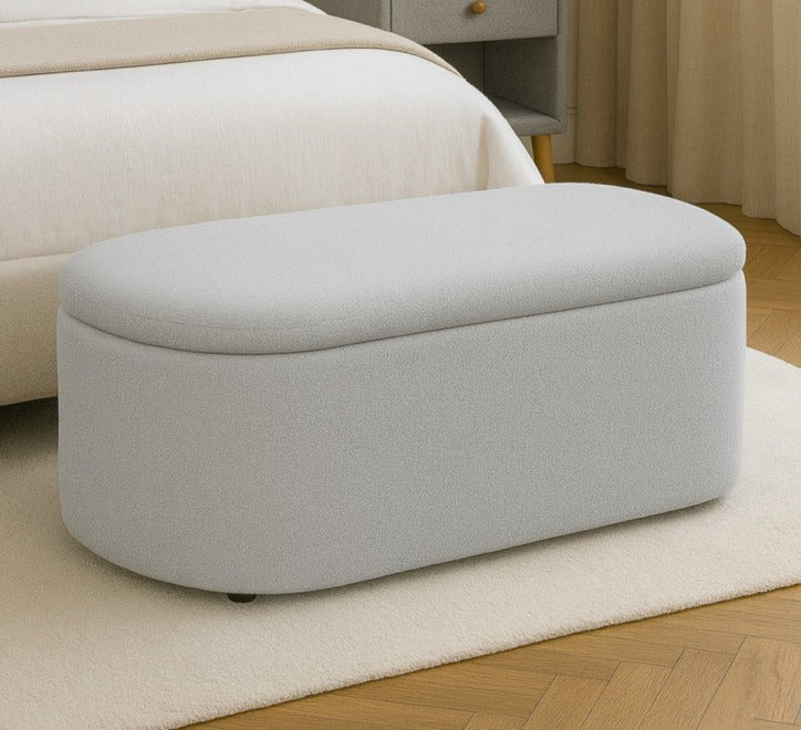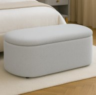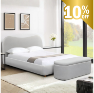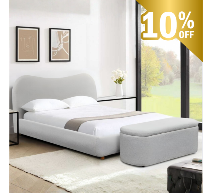 Discover GIE's new Donegal bed in elegant grey fabric, featuring sturdy wooden feet and a grooved headboard for a complete look. Add the matching storage ottoman to rejuvenate your bedroom.