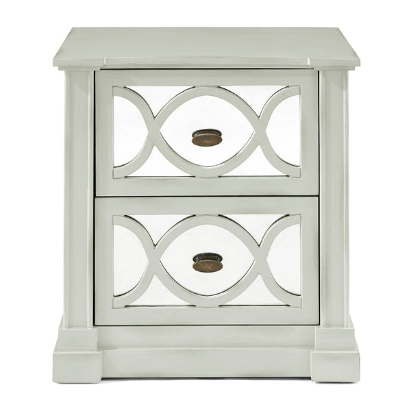 The Modena 2 Drawer End Table effortlessly combines style and functionality. Featuring 2 spacious drawers with soft-close mechanism, this table offers convenience and elegance. The mirrored glass drawer front panels add a touch of glamour to your living space.