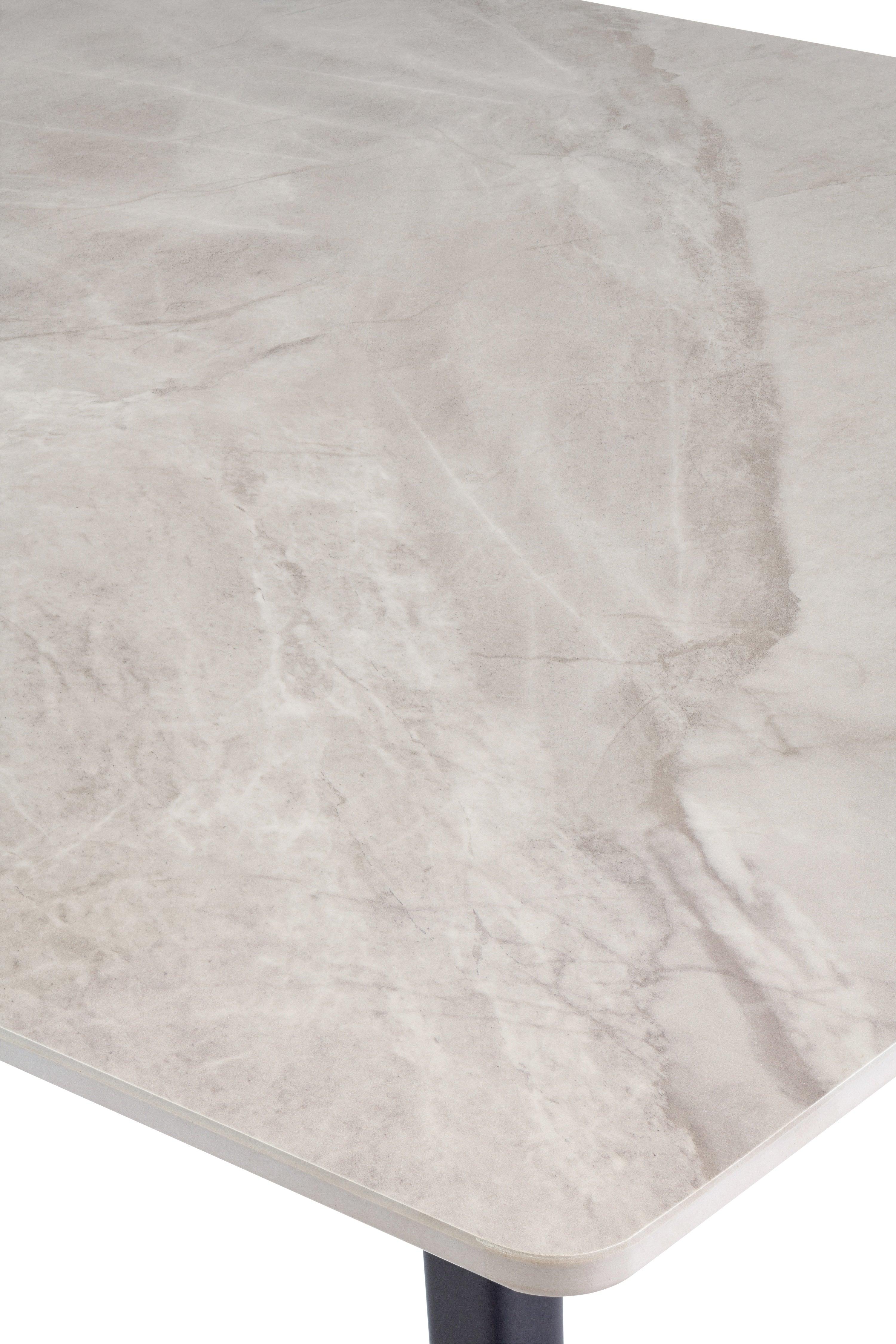 Crafted from high-quality materials, the table features a luxurious sintered stone top that is both durable and easy to maintain, ensuring it withstands the rigours of everyday dining. The sturdy black powder-coated legs provide excellent stability while adding a chic contrast to the elegant grey finish. This table is designed for both casual meals and formal gatherings, making it a versatile addition to your home.