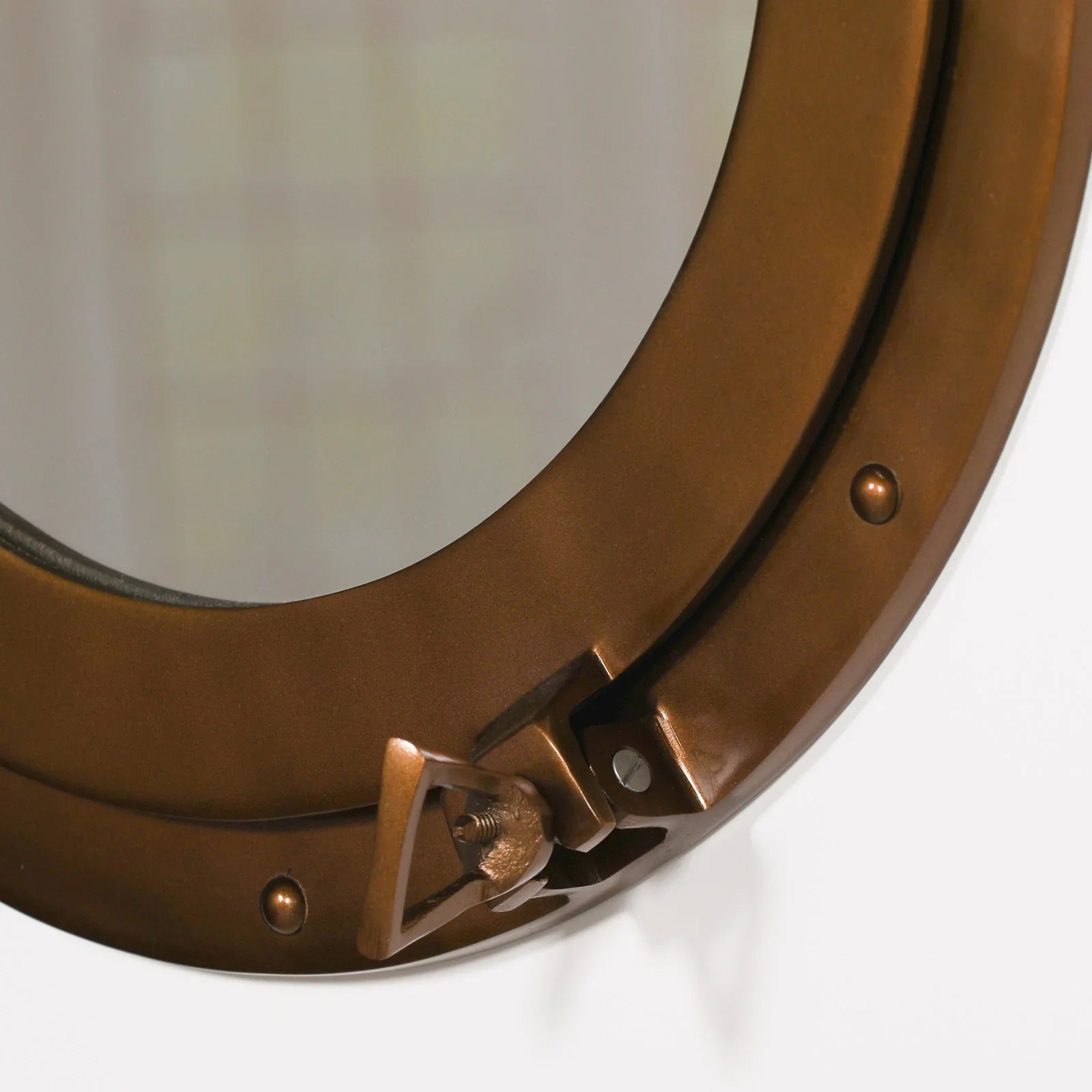 Add a touch of nautical charm to your space with this large porthole style accent mirror. Crafted from aluminium with an antique brass finish, it features a detailed frame that adds character to any room.