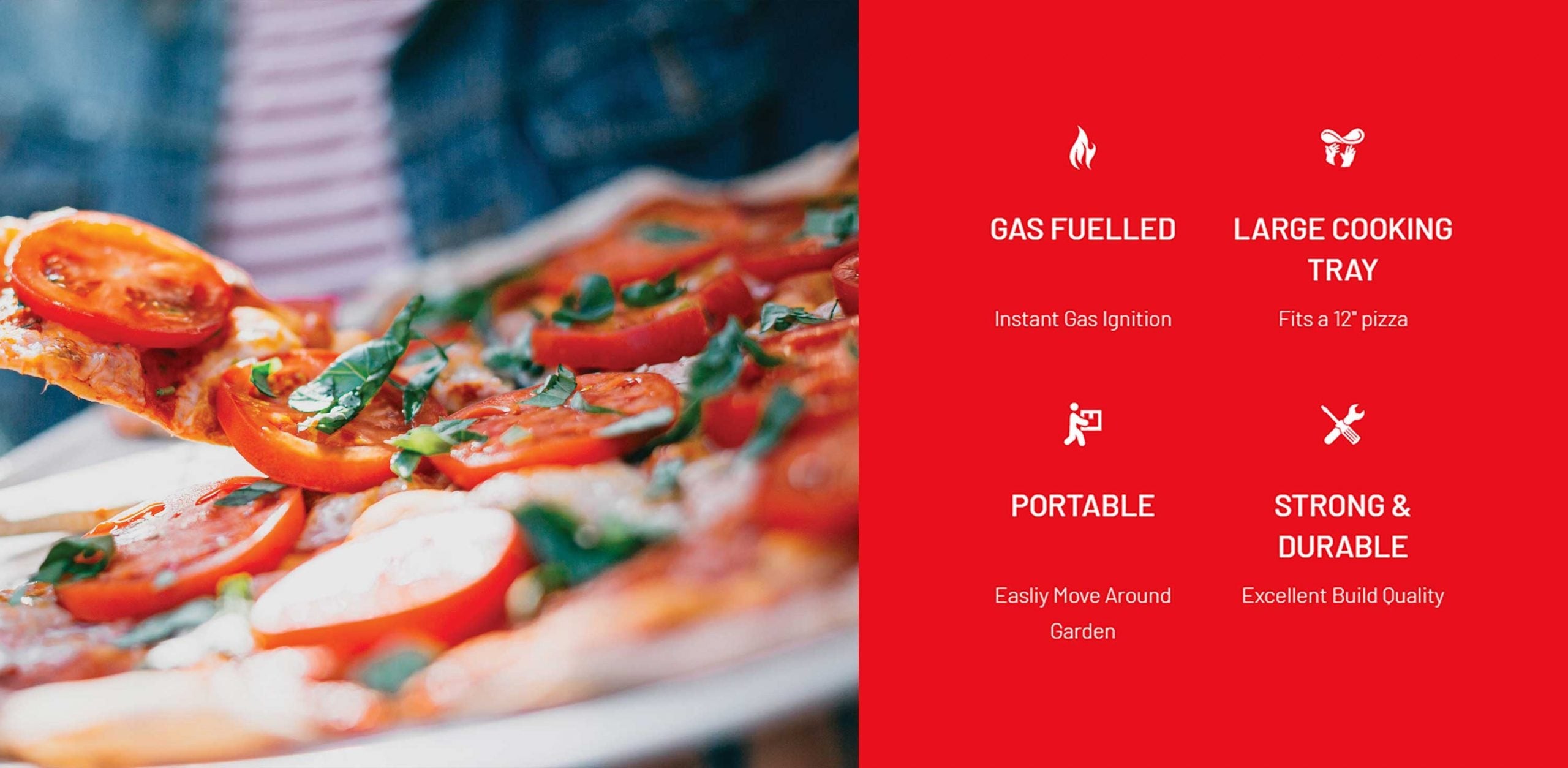 No worrying about wood fires or matches all you have to do is flip down the legs, turn on the gas and click the instant ignition button. You’ll be cooking restaurant quality pizza in just 10 minutes.With the Luna Flare 12’s insulated steel shell it can reach temperatures of 500˚C in a matter of minutes. The heat control dial allows you to control the temperature so not only can you cook amazing pizza but also flat breads, vegetables, fish and meat. Complete your garden today by adding the Luna Flare 12 to your patio.