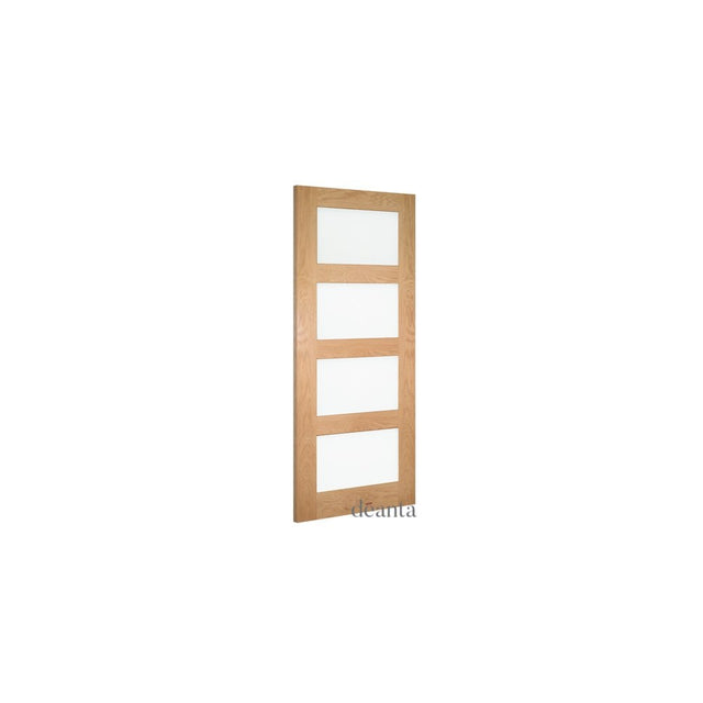 FEATURES + Real American oak veneer + Crown cut veneer + Solid core + Prefinished + Covered by the Deanta 10 year manufacturers warranty + Clear/Frosted toughened glass + Frosted double lamel glass DOOR SIZES DOOR SIZES - SOLID 2032 x 864 x 44mm 2032 x 813 x 44mm 1981 x 762 x 44mm 1981 x 711 x 44mm 1981 x 660 x 44mm 1981 x 610 x 44mm 1981 x 838 x 44mm