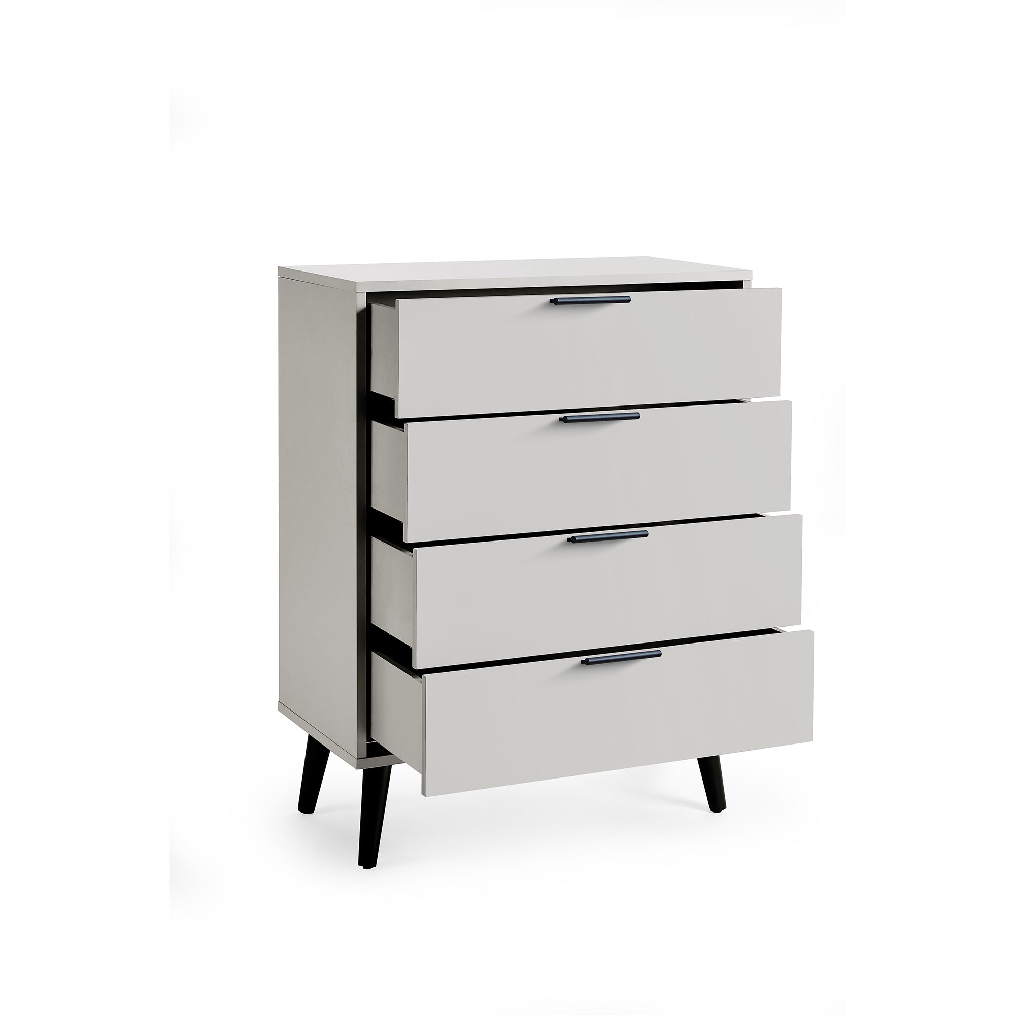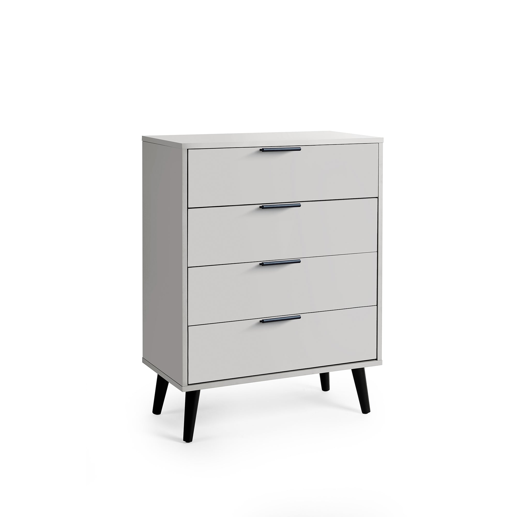 The Alba 4 Drawer Chest in Grey combines a sleek, modern design with ample storage space, making it a stylish and practical addition to any bedroom. The grey finish adds a contemporary touch to your decor, while the four spacious drawers provide plenty of room for keeping your belongings organised and tidy. Each drawer is equipped with a smooth-gliding mechanism for effortless opening and closing, ensuring easy access to your items. Elevate your bedroom with the Alba 4 Drawer Chest for a chic and functional storage solution.