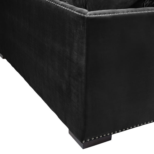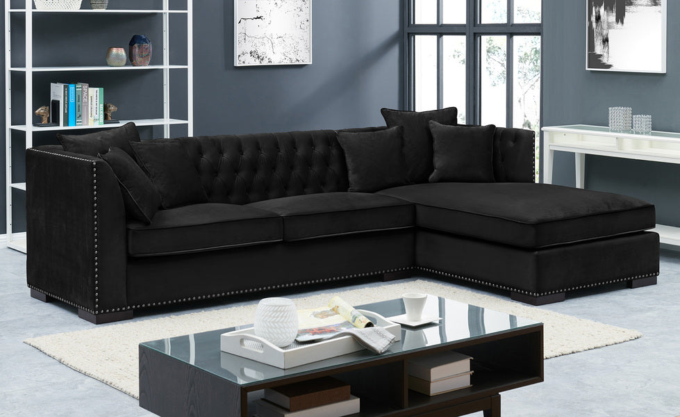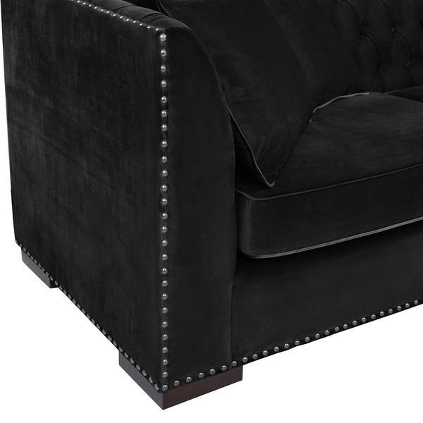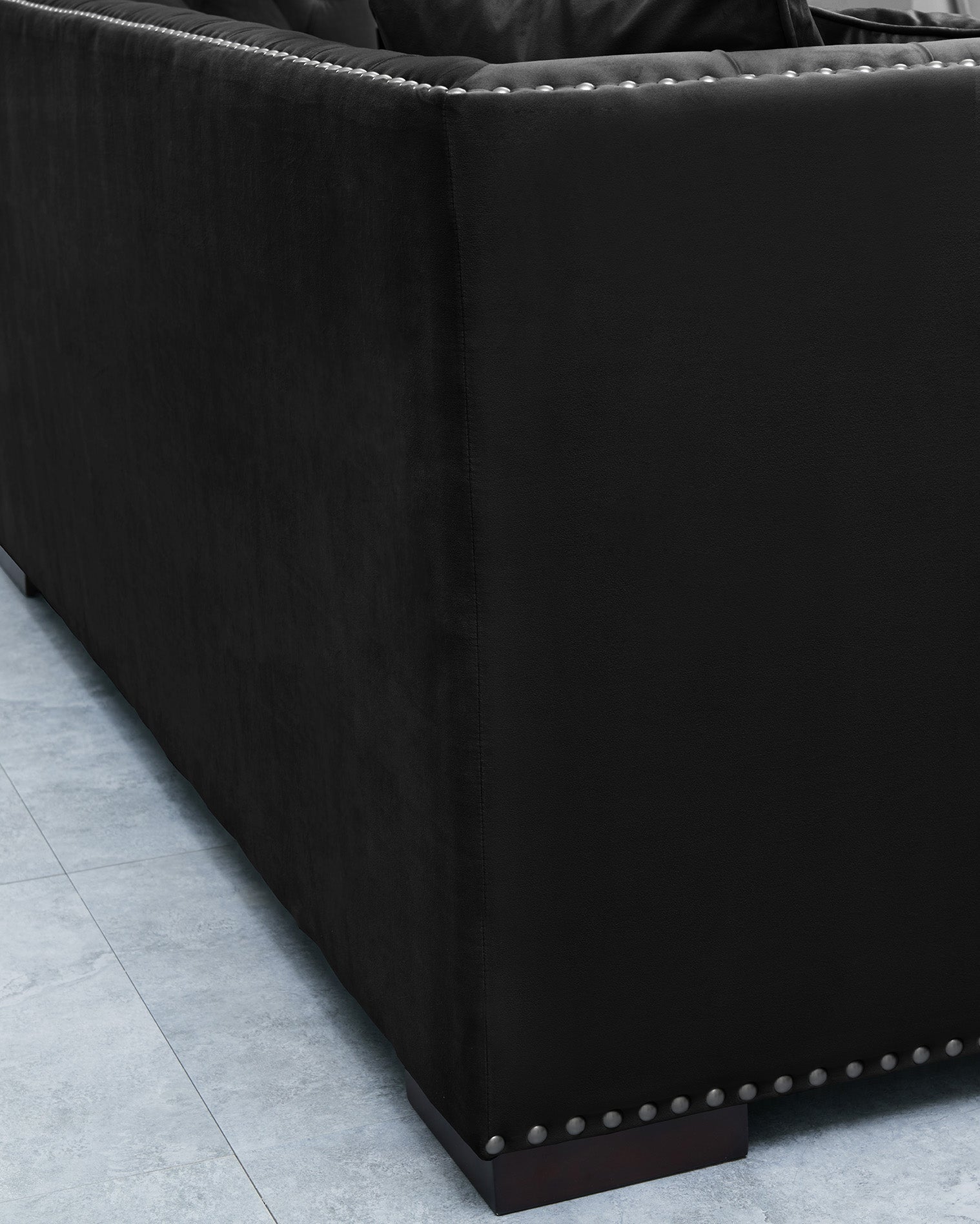 Elevate your living space with the Black Chester Corner Suite-Right. This luxurious piece exudes sophistication and style, making it the perfect addition to any modern home. The sleek black design adds a touch of elegance, while the spacious seating provides comfort for you and your guests.