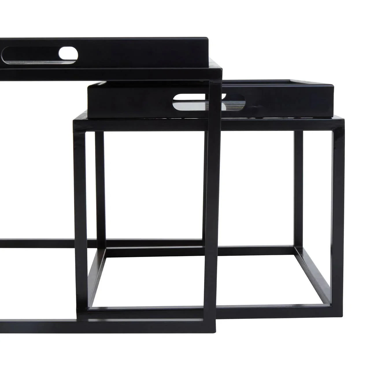 Elevate your living space with our Marble Tray Top Nested Tables. Featuring two chic rectangle side tables in a sleek black finish with vibrant marble designs, these versatile pieces are both stylish and functional. Use them as side tables or detach the tops for serving trays when entertaining. Perfect for adding a contemporary touch to your home.