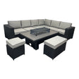 Ely Black Rattan Fire Pit Corner Sofa Set – Multi-Piece with Benches
