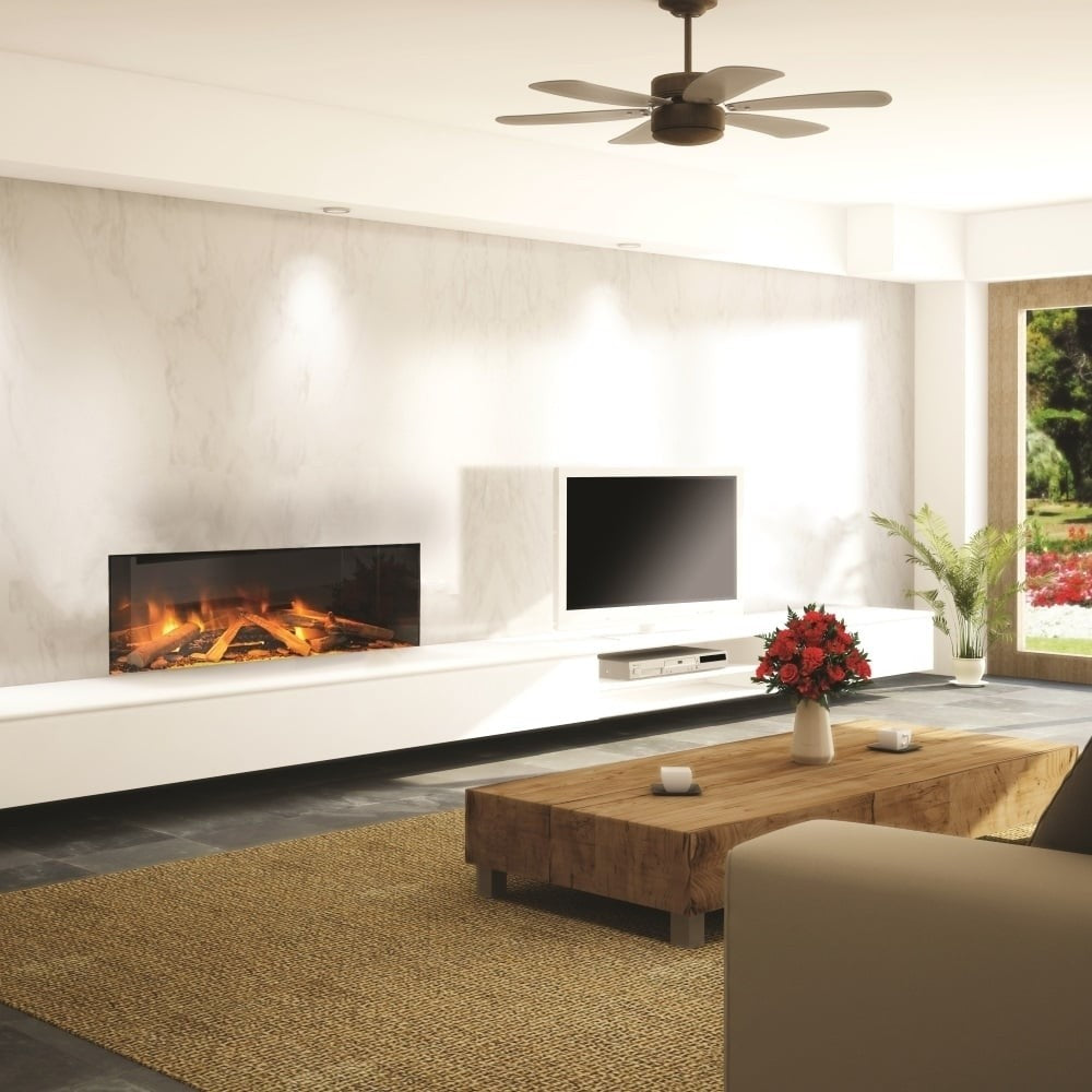 Enhance the ambiance of your space with the Evonic E1030 Multi-Box Ultra HD Electric Fire, featuring a Continental Ceramic Log Set. This versatile fire offers the flexibility of one, two, or three sided glass options all from a single box.