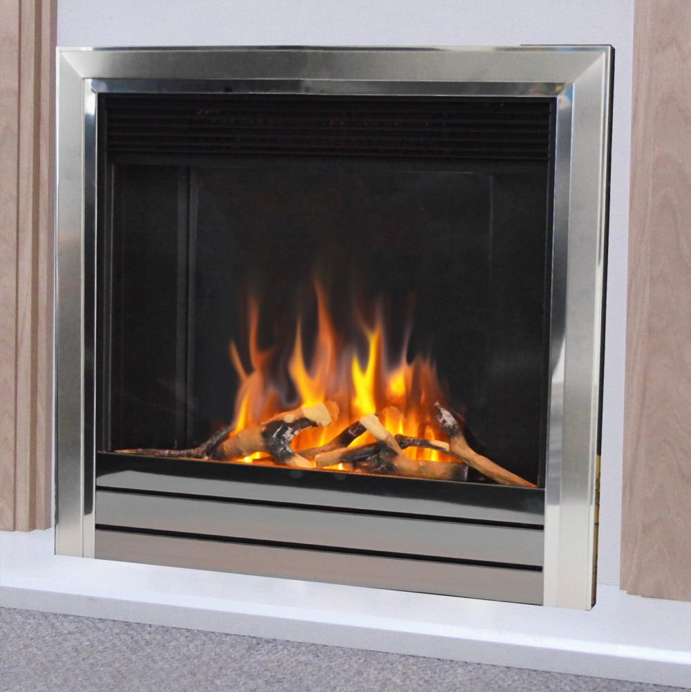 Enhance your living space with the stylish Evonic Kepler 22 Two Tone Chrome Frame stove. This sleek stove features a modern design with a log and pebble set, adding a touch of elegance to any room. Conveniently operated by remote control, it offers both functionality and aesthetic appeal.