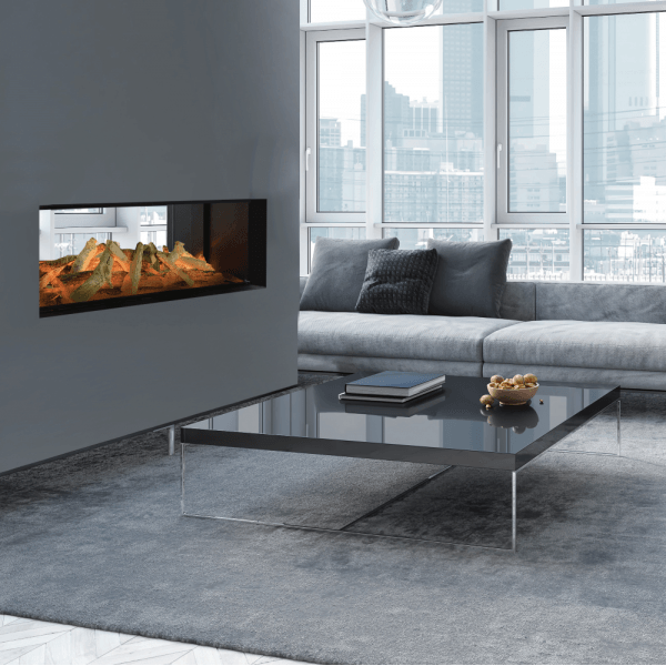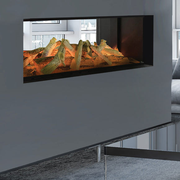 Lindstrom Double Sided electric fire by Evonic offers a stylish design with a Continental Ceramic Log Set, creating a cosy ambience in any room. This fire is App Controlled for convenient operation.