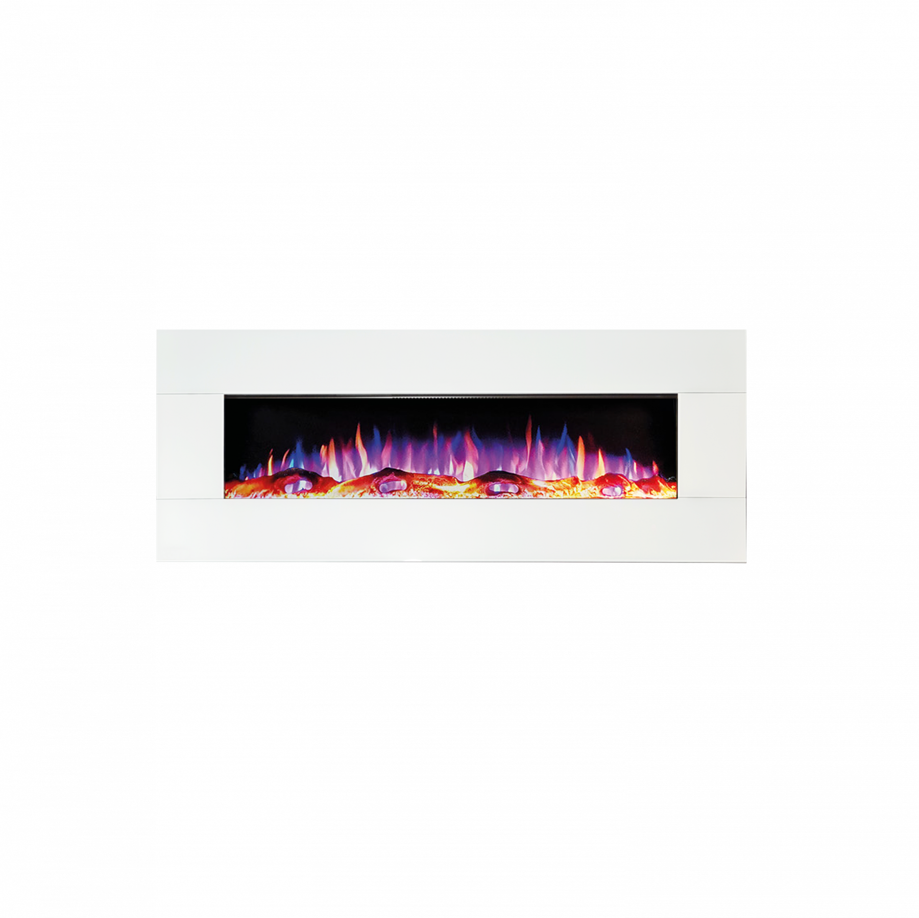 The Ezee Glow Grand Zara 60" White Electric Fire is a stunning addition to any home, boasting a contemporary design with a width of over 1.5m. Choose between wall hanging or recess fitting to seamlessly integrate this stylish fire into your living space. Enjoy features like a 7-day timer function, LED flames in blue, orange, or both, and the option of 10 different fuel bed colours. Control the 1.6kW heater with the included remote, and safely place a TV above the front-facing heater. This model comes with both black and white glass surrounds for added versatility.