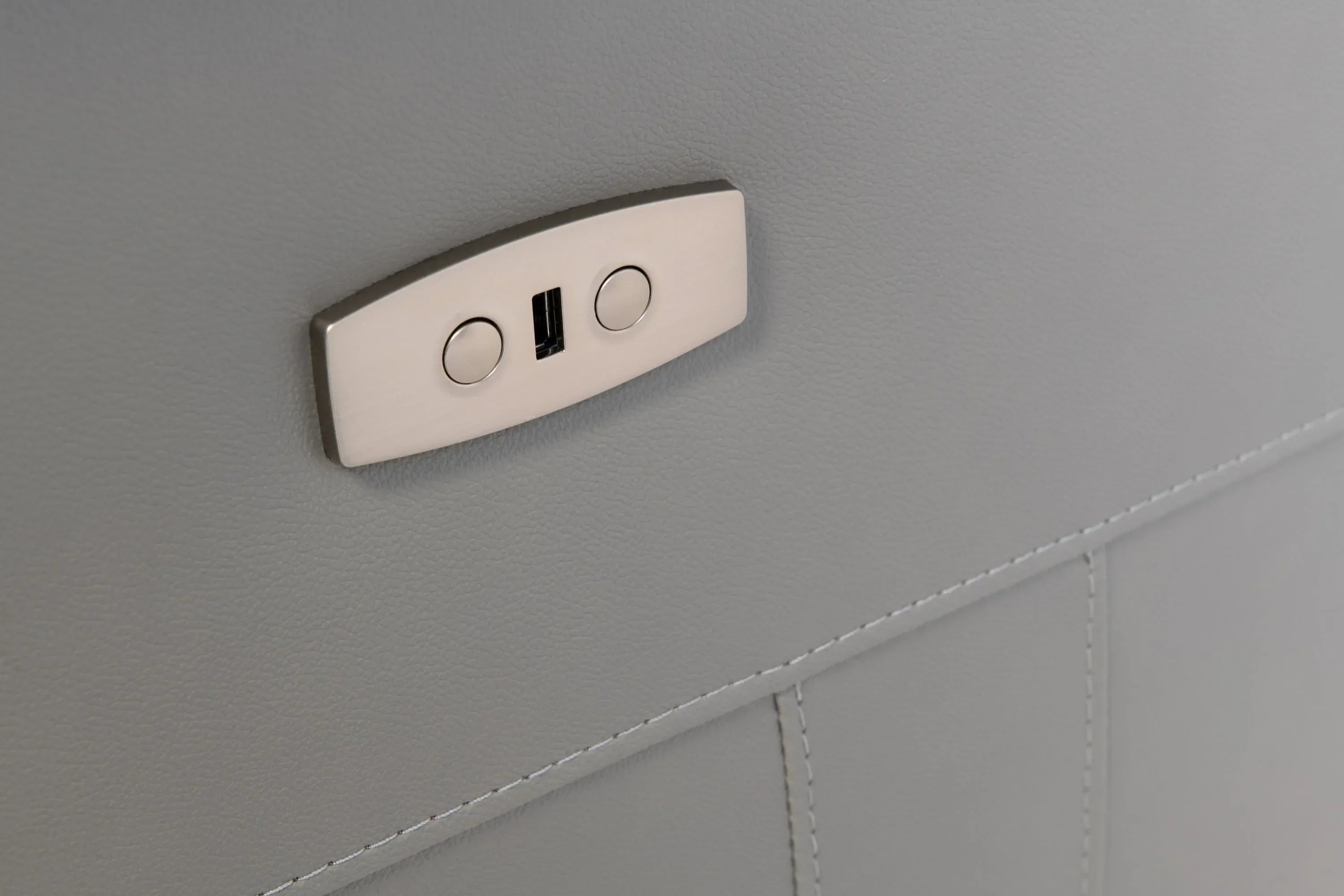 - Modern sophistication: Sleek, clean lines with a soft grey leather tone.