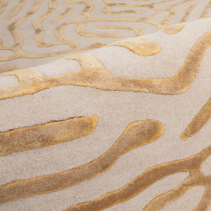 The Katherine Carnaby Coral Gold Rug collection offers an elegant gold-toned coral design, perfect for adding luxury to your home. Hand-tufted and carved from a blend of wool and viscose, these rugs provide a high-shine finish that elevates the aesthetic of any room with their sophisticated pattern.