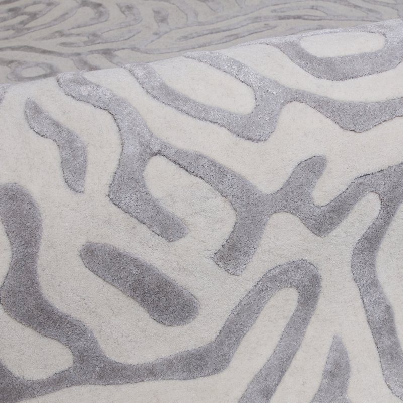 The Katherine Carnaby Coral Silver Rug collection blends modern design with luxurious craftsmanship, featuring silver coral-inspired patterns and high-shine finishes. Hand-tufted from a wool and viscose blend, these rugs offer both elegance and durability, perfect for contemporary spaces that require refined style.