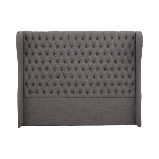 Enhance your bedroom with the Ashton Grey Super Kingsize Headboard, featuring button-tufted grey fabric upholstery and a sturdy structure crafted from oak wood. With its wingback design, this headboard offers comfort and elegance, perfect for creating a cozy retreat. Its quality craftsmanship and classic appeal make it a timeless addition to any bedroom decor.