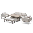 Elevate your outdoor space with the Pulse 3 seat sofa dining set, featuring La Vita High Performance Fabric and a powder-coated aluminium frame for lasting quality. Designed for year-round use, the set includes a ceramic stone tempered glass table top and quick-dry foam cushions, combining style with functionality. Whether entertaining guests or enjoying a peaceful meal outdoors, this set in Latte, Zinc, or Oatmeal colour options adds elegance to any setting.