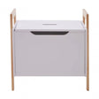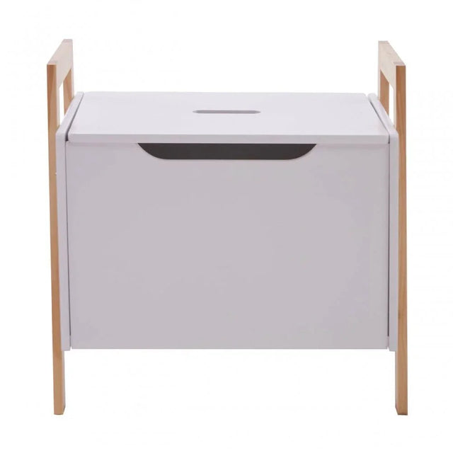 The Kensington Storage Box features a natural wood frame with a white finish in a contemporary modern design. Sturdy and practical, it provides efficient storage solutions while complementing any room decor.