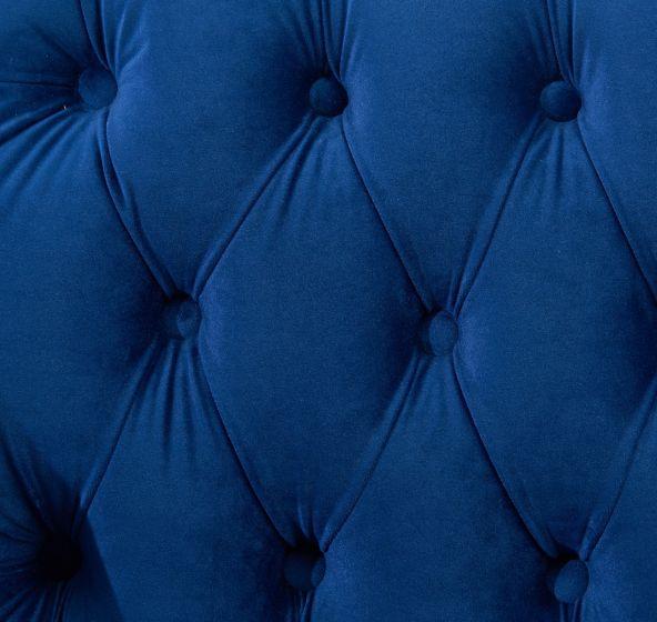 The Royal Blue Chester Corner Suite - Right boasts a spacious design, providing ample seating for you and your guests to relax and unwind. With its sleek lines and royal blue upholstery, this corner suite effortlessly blends classic charm with contemporary flair, enhancing the aesthetic appeal of your home interior.